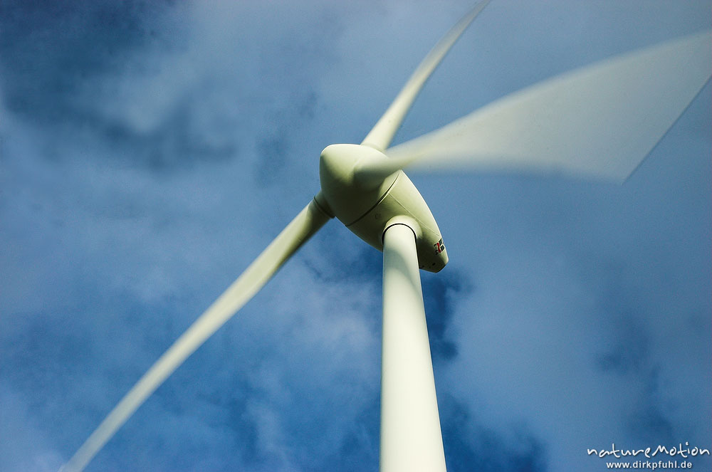 Windrad vor bewölktem Himmel, Diemarden, Göttingen, Deutschland