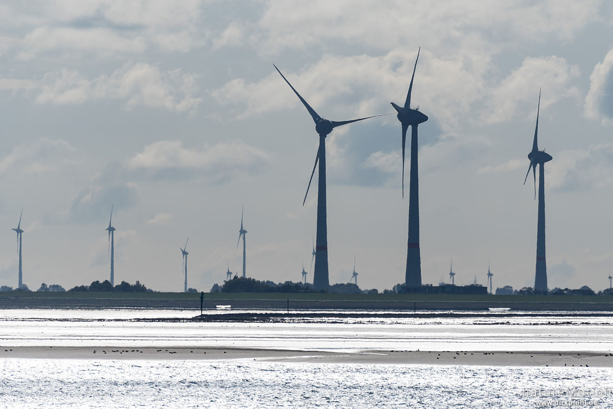 Windräder an der Küste bei Neuharlingersiel, Spiekeroog, Deutschland