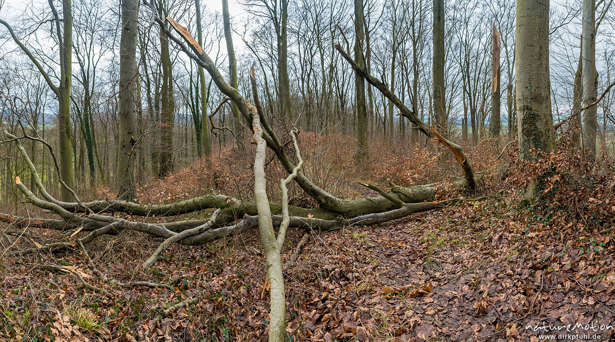 Windwurf, umgestürzte Buche, Sturm Friederike, Westerberg, Göttinger Wald, Göttingen, Deutschland
