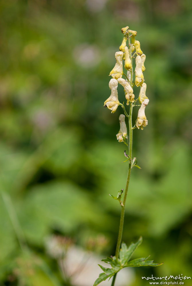 Wolfs-Eisenhut, Gelber Eisenhut, Aconitum lycoctonum, Hahnenfußgewächse (Ranunculaceae), Blütenstände und Laubblätter, Höllentalklamm, Wetterstein, Garmisch-Partenkirchen, Deutschland