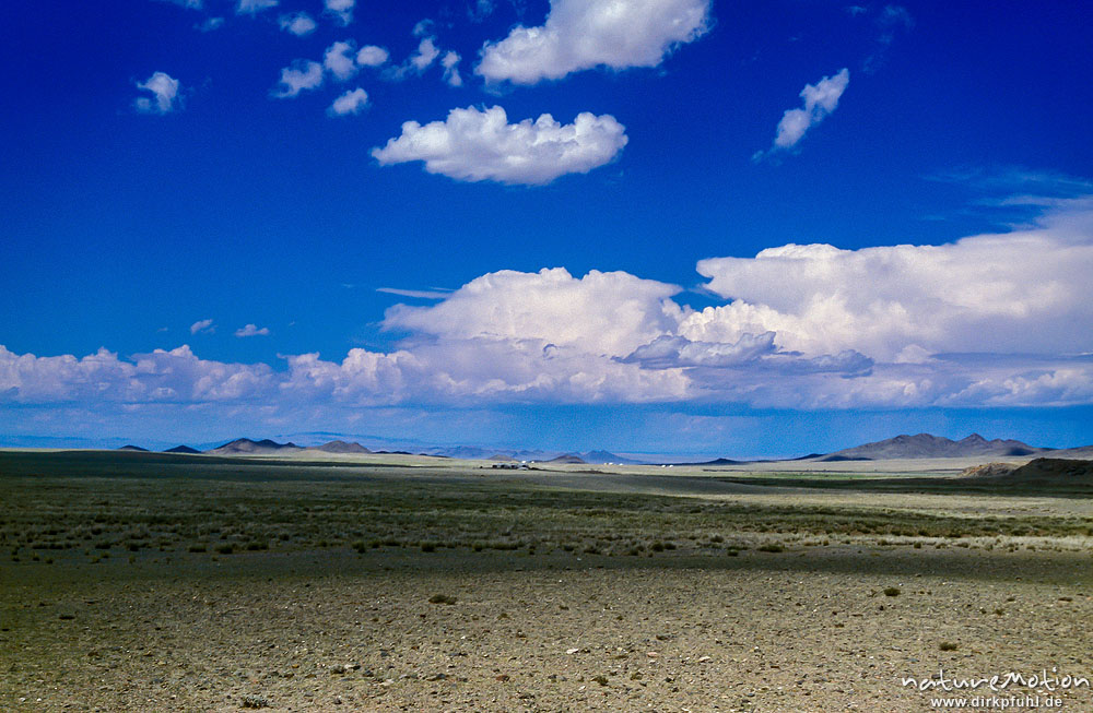 Wolken ?ber weiter Steppe, karge Halbw?ste, Nord-West-Gobi W?ste Gobi, Mongolei