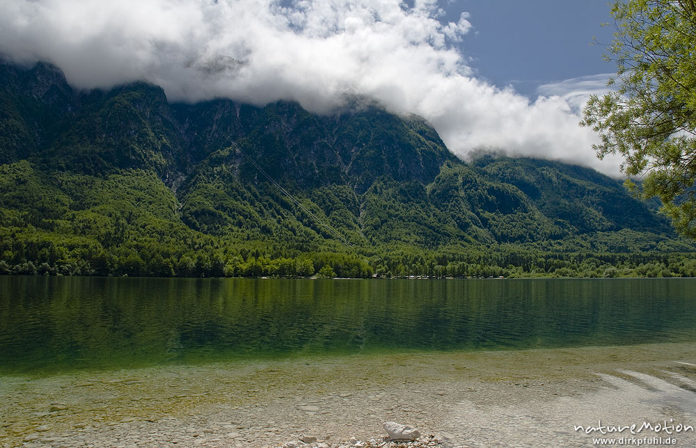 Wolken ziehen über Bergkette, Südufer, Bohinjer See Wocheiner See, Slowenien