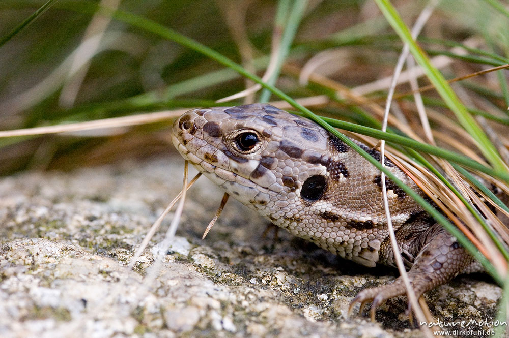 Zauneidechse, Lacerta agilis, Lacertidae, Kopf, bei Waren Müritz, Deutschland