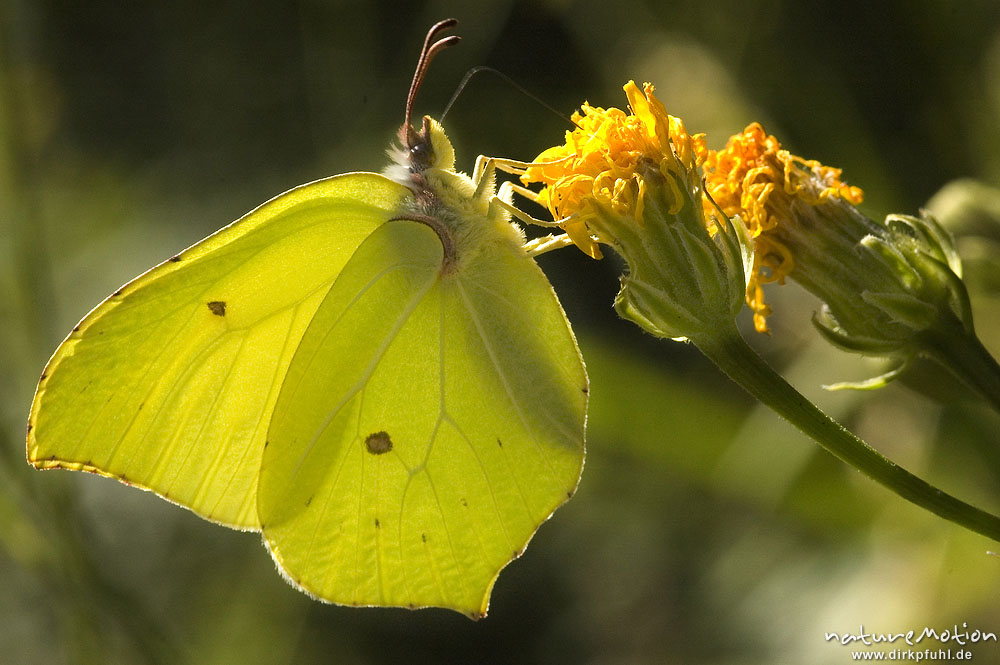 Zitronenfalter, Gonepteryx rhamni, Pieridae, an Korbblütler, Göttinger Wald, Göttingen, Deutschland