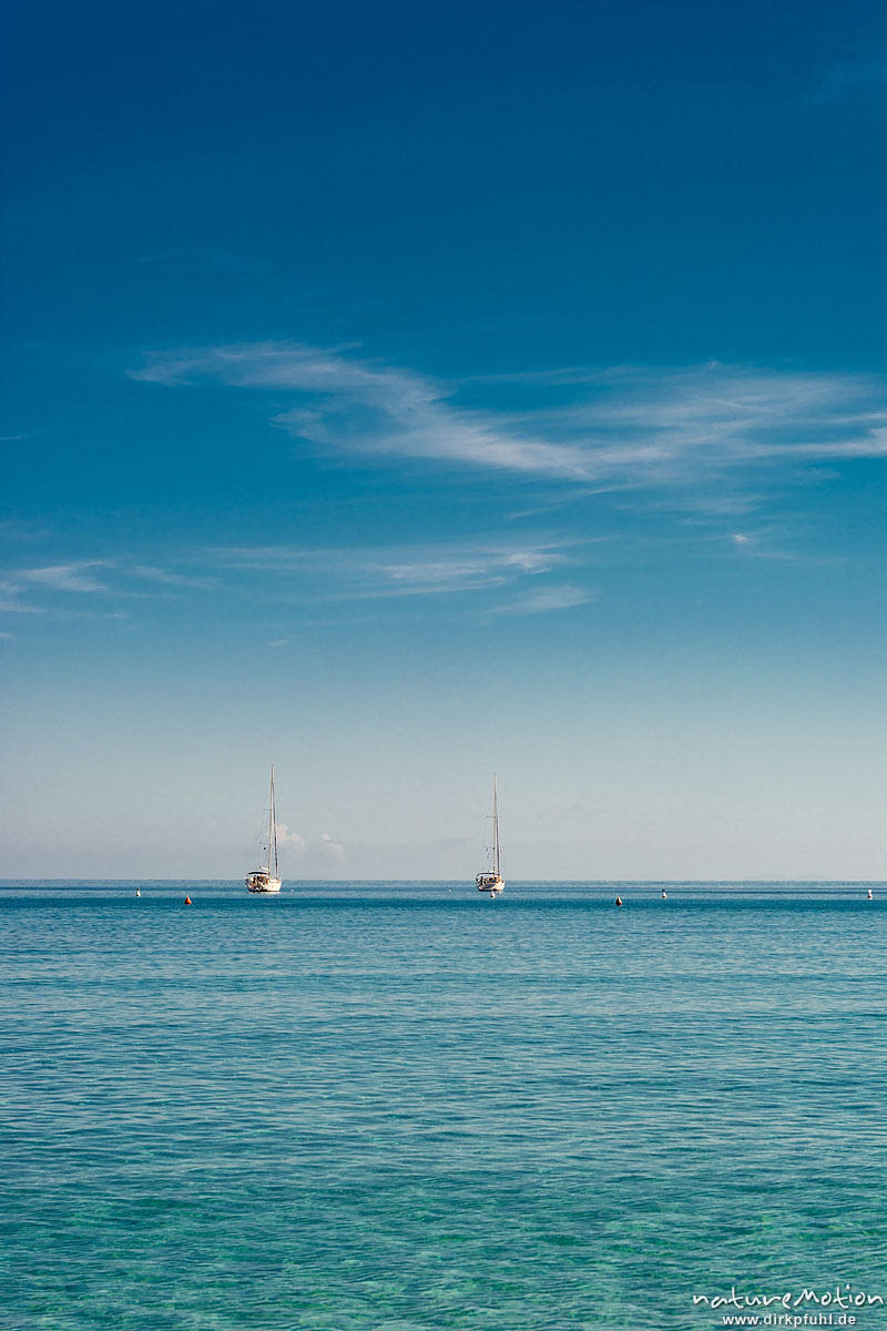 zwei Segelboote auf blauem Meer, Bucht von Fetovaia, Elba, Italien