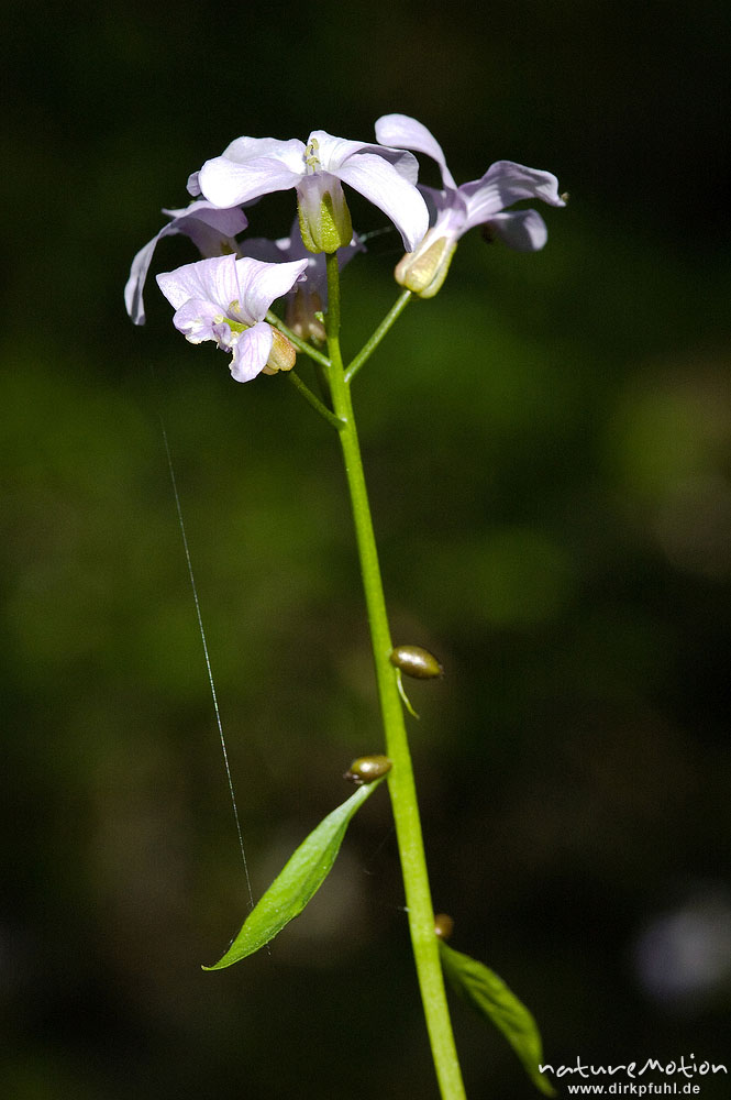 Zwiebeltragende Zahnwurz, Dentaria bulbefera, Kreuzblütengewächse (Brassicaceae), Blütenstand und Stengel, Buchenwald, Weisswassertal, Göttingen, Deutschland