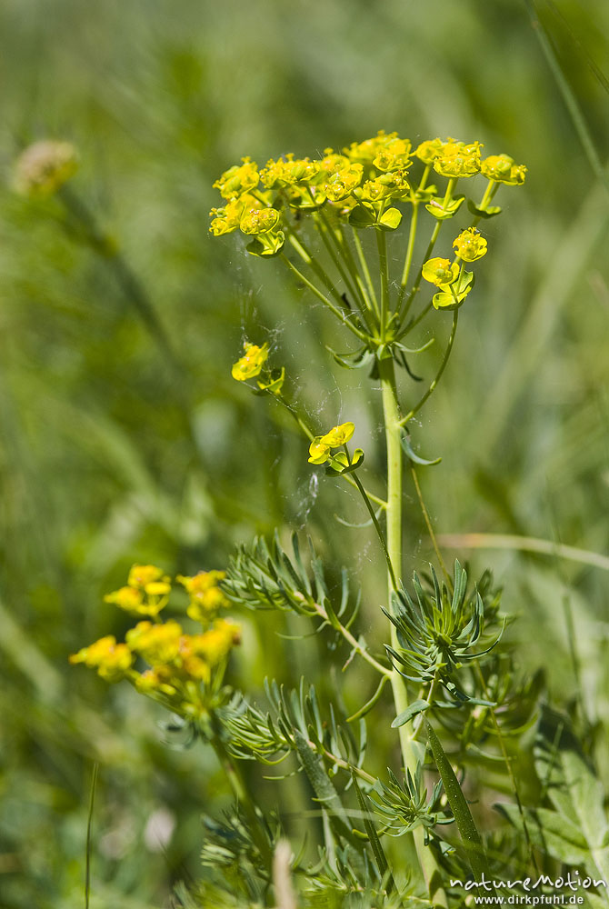 Zypressen-Wolfsmilch, Euphorbia cyparissias, Euphorbiaceae, Blütenstand und Tragblätter, Trockenhänge Naturschutzgebiet Unstruttal, Nägelstedt (Unstrut), Deutschland
